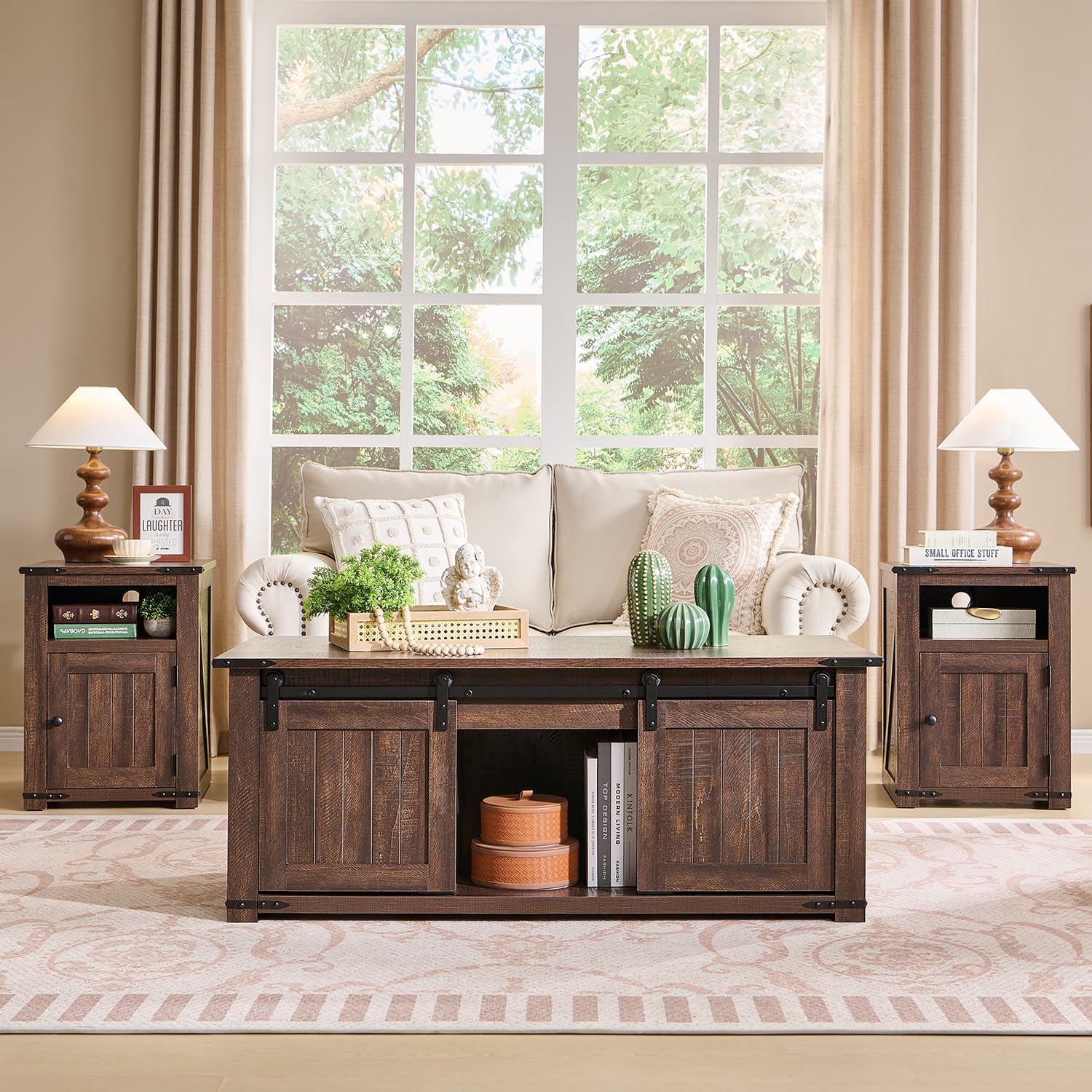Farmhouse Nightstand with Charging Station, 20" Rustic End Table w/Barn Door, Wood Sofa Side Bedside Table w/Open Shlef & Stroage Cabinet for Bedroom (White) Visit the IFGET Store